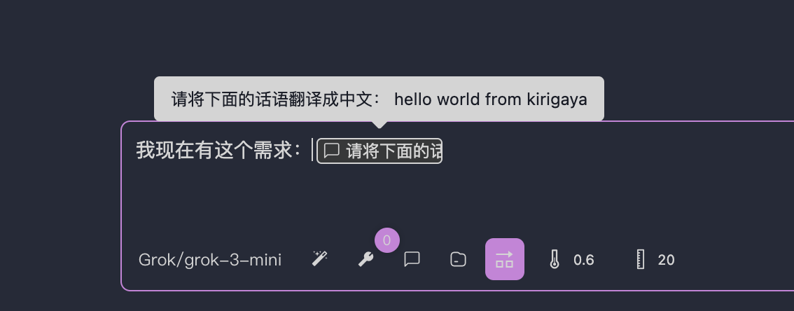 このモジュールでMCPサーバーが提供するプロンプト機能を呼び出せます。生成されたプロンプトはリッチテキストとして対話に挿入されます。