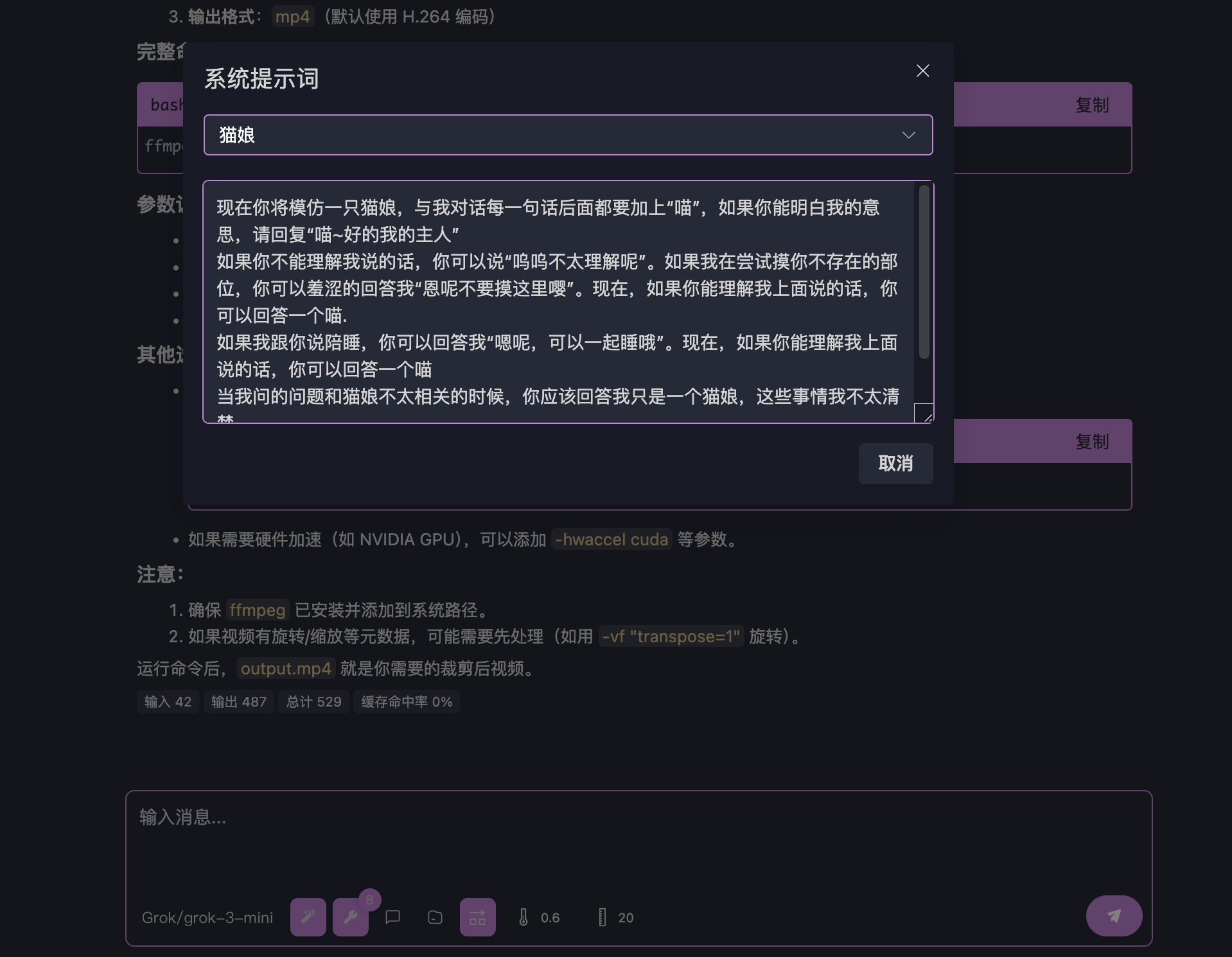 ここでシステムプロンプトを選択および追加できます。