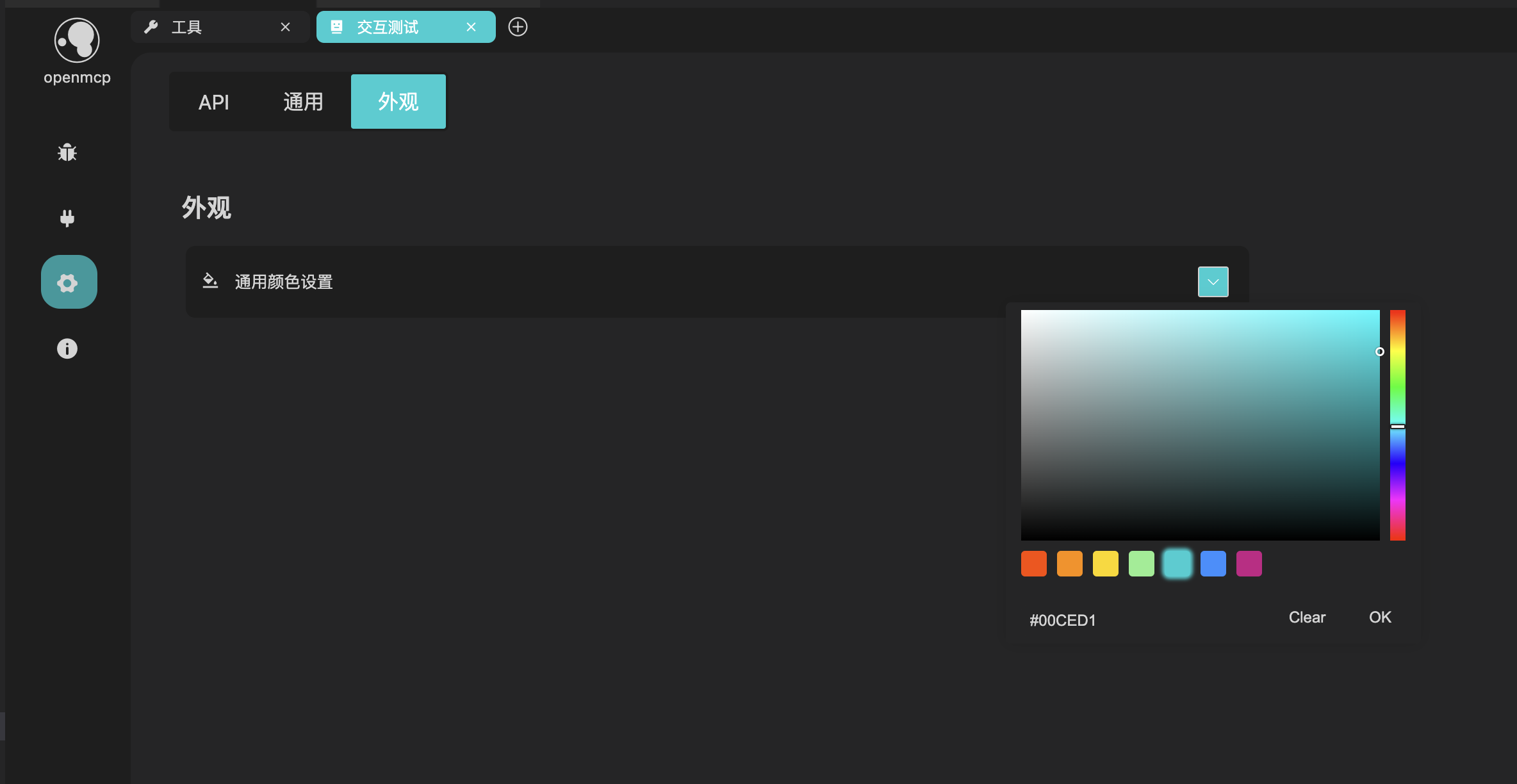 ここで openmcp のテーマカラーを切り替えられます(デフォルトはピンク)