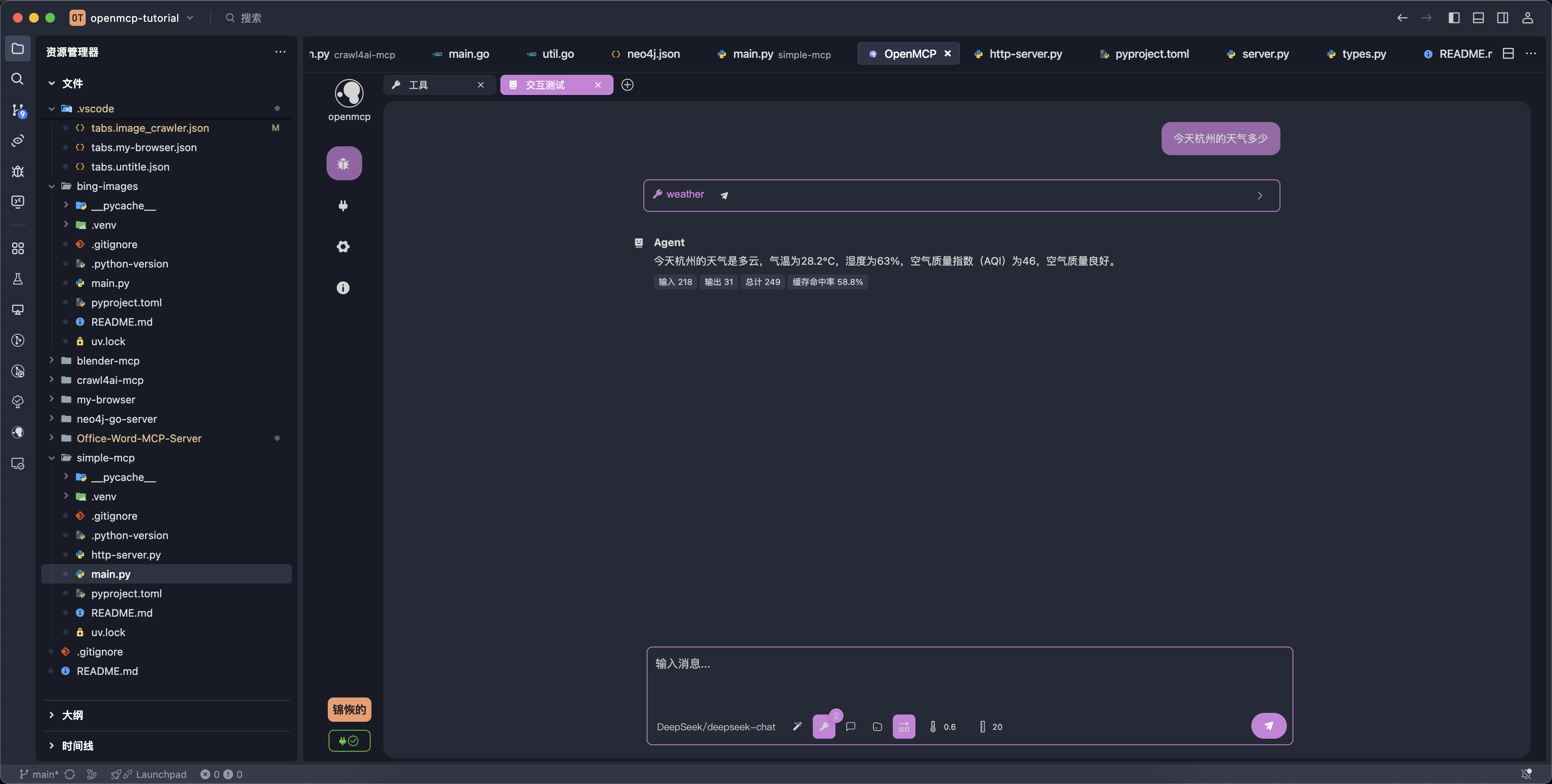 openmcp 公式ドキュメントのデモ例の多くは、trae の「深藍」デフォルトテーマをベースにしています。