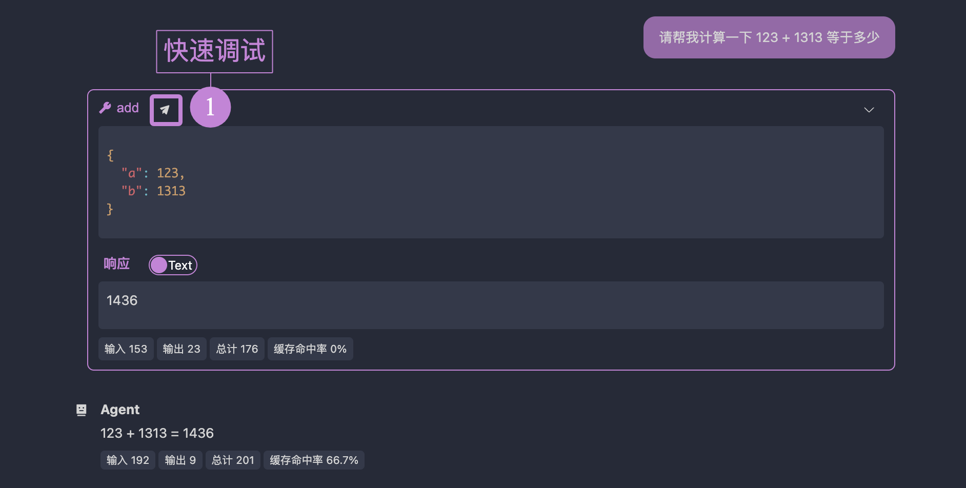 During debugging, it is inevitable that the large model may provide unsatisfactory answers due to a tool error. To quickly determine whether the issue is caused by a tool, you can click the small airplane icon below: